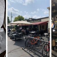 Choice of bacon or vegan seitan bacon, lettuce and tomato on marbled rye with mayo or vegan mayo.